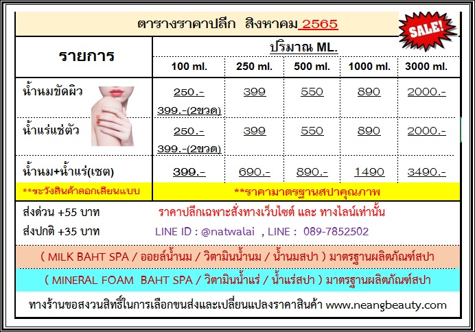 น้ำนมน้ำแร่สปาผิวขาว มาตรฐานสปาไทย สั่งด่วนแอดไลน์ @natwalai